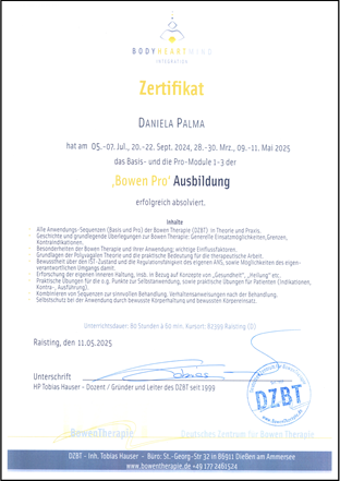 Rechtlicher Hinweis: Die Bowen-Technik ist eine Methode, deren Evidenz derzeit nicht durch wissenschaftlich basierte Studien abgesichert ist. Sie ersetzt daher keinesfalls den Arztbesuch oder Besuch des Physiotherapeuten oder Masseurs etc. Sie darf damit aus rechtlichen Gründen nicht zu den Heilbehandlungen oder Behandlungen von krankheitsbedingten Zuständen gezählt werden.
